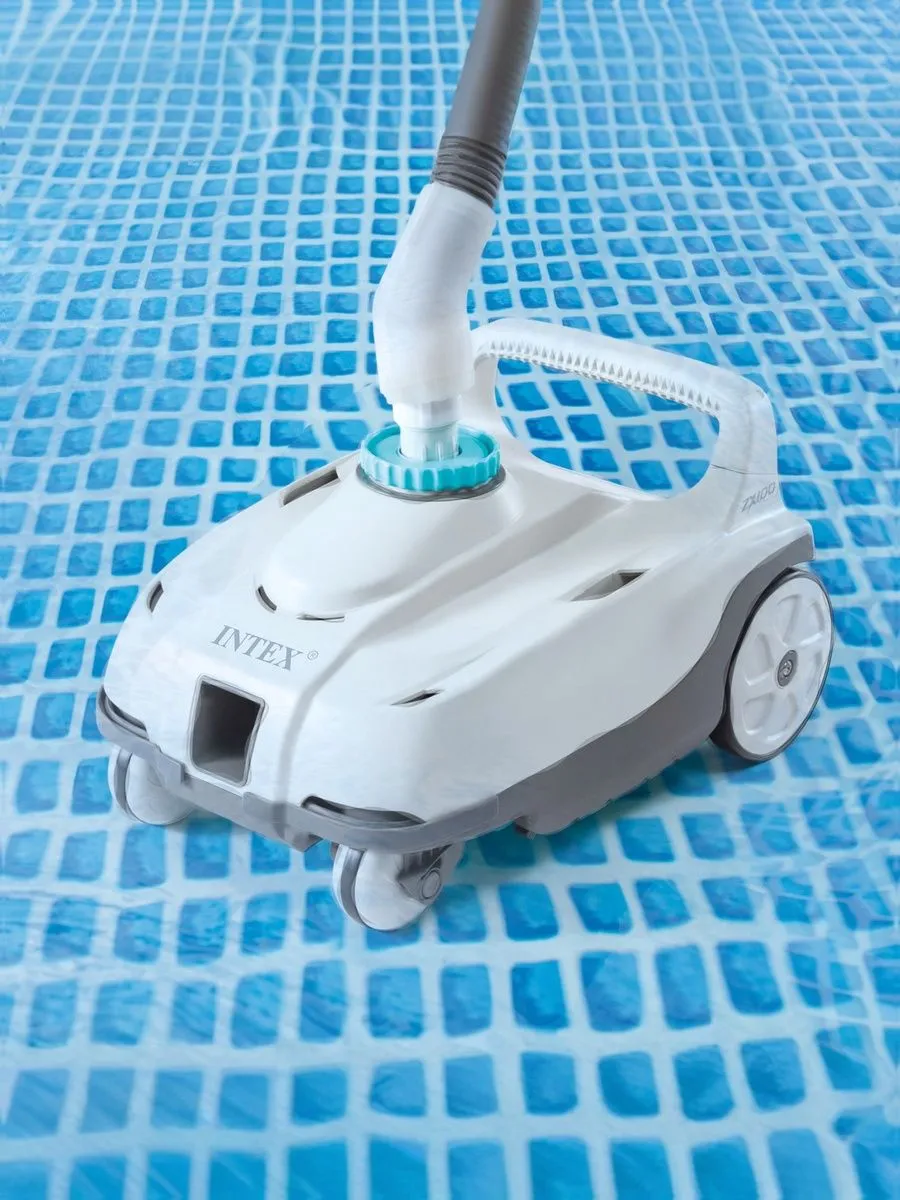 Для бесперебойной работы автоматического пылесоса необходимо подключить его к фильтрующему насосу с подачей воды 6056-13248 л/ч. Явным преимуществом является то, что пылесос Intex ZX100 подходит ко всем надувным и каркасным бассейнам с отверстиями 32 мм и 38 мм. В комплект входит не запутывающийся шланг длиной 6,5 м.