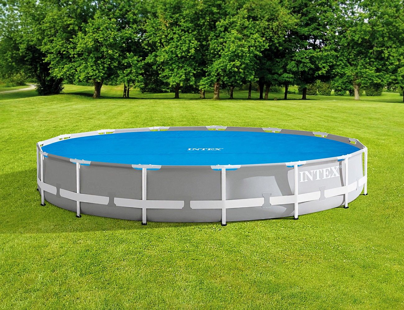 - Еще одной особенностью данного тента является отсутствие каких-либо креплений (он плавает на поверхности воды). Данная модель предназначена для круглых надувных и каркасных бассейнов диаметром 457 см