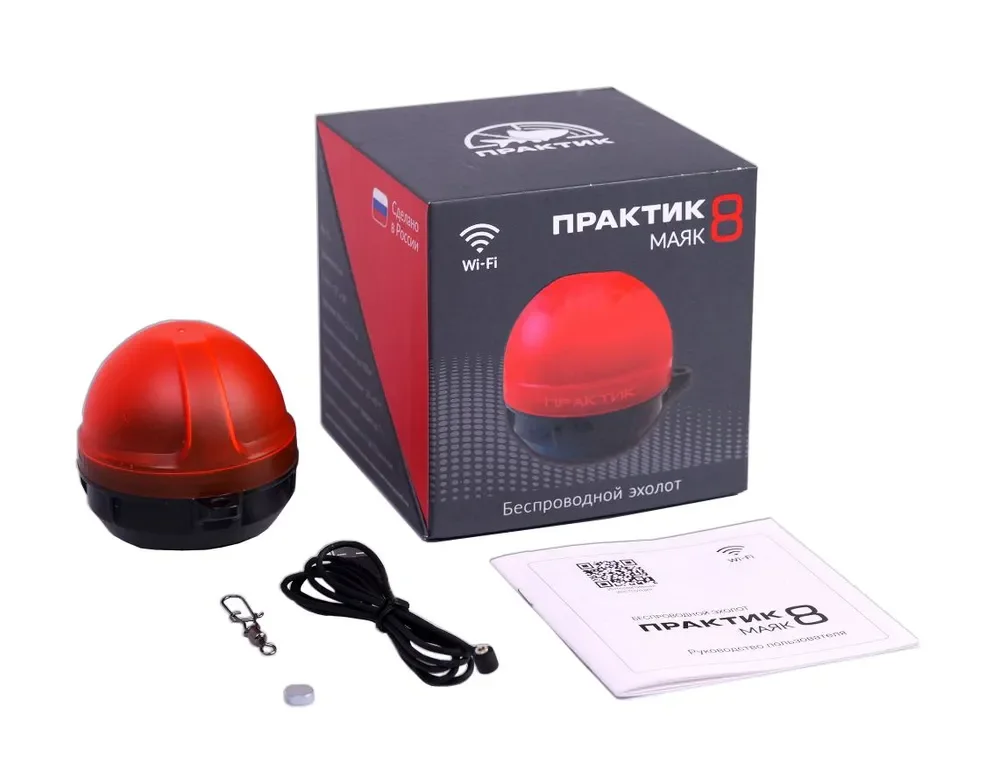 Эхолот Практик 8 Маяк Wi-Fi представляет собой беспроводной датчик "Маяк". Работа прибора заключается в соединении с планшетом или смартфоном, на который необходимо предварительно загрузить бесплатное приложение "Практик 8".
