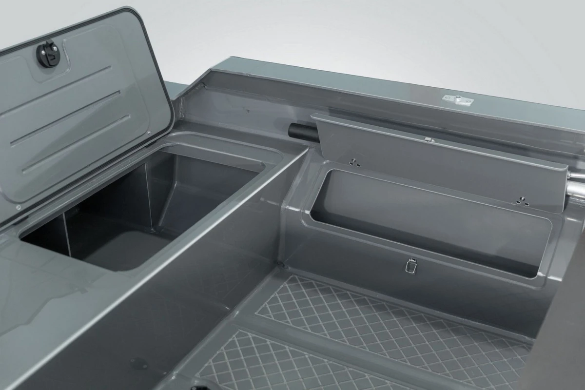 Самая компактная и легкая модель из серии лодок Swimmer. Изготовлена из листов полипропилена (PP), который обладает исключительной прочностью, позволяющей эксплуатировать ее в самых жестких условиях. Дополнительный комфорт обеспечивается тем, что у материала еще и отличная шумо- и виброизоляция, несравнимая с алюминиевой лодкой.