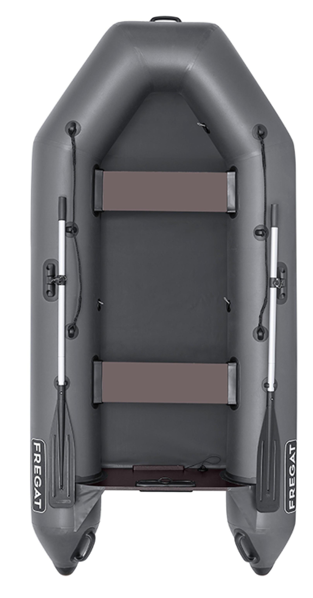 Лодка комплектуется легкими алюминиевыми веслами со съемной лопастью. Весла устанавливаются в эффективные поворотные уключины, значительно облегчающие процесс гребли.